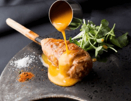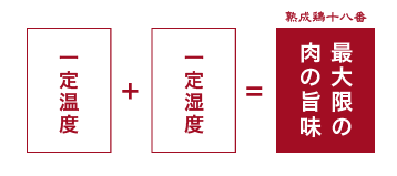 様々なブランド鶏、地鶏が存在する中、10年かけてたどり着いたのが「十八番熟成鶏」です。一定温度・一定湿度で鶏を丸ごと寝かせる熟成法を採用。肉の旨味が最大限に引き出された状態の鶏肉を使用します。